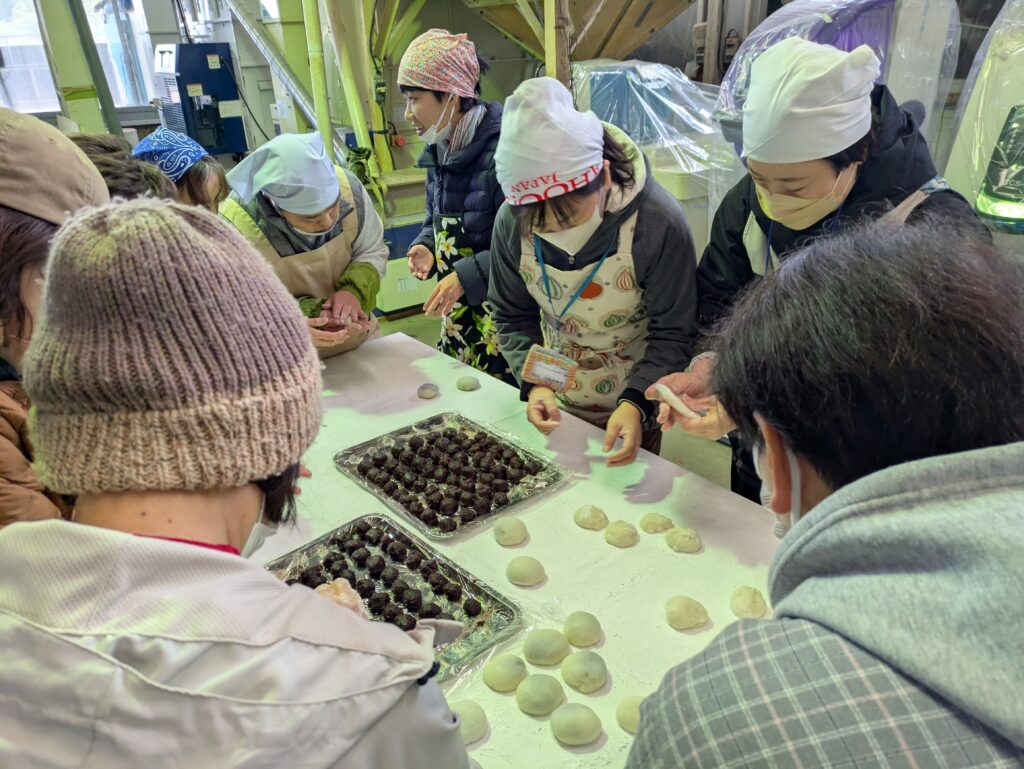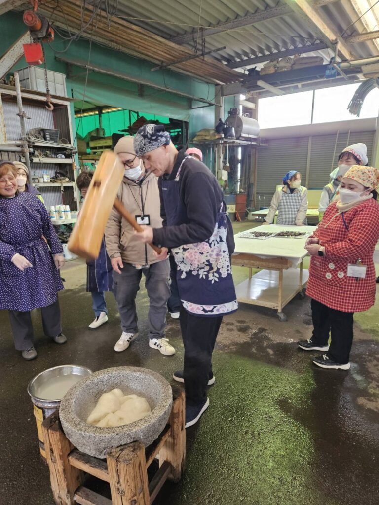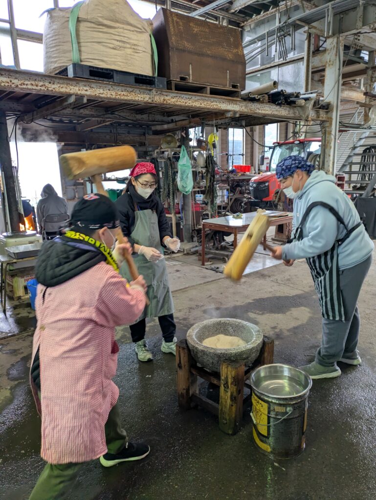 寒風吹く中、年納のもちつきを行いました。来年も健康に過ごせますように。